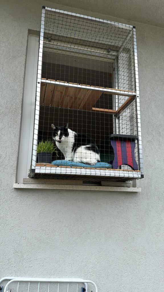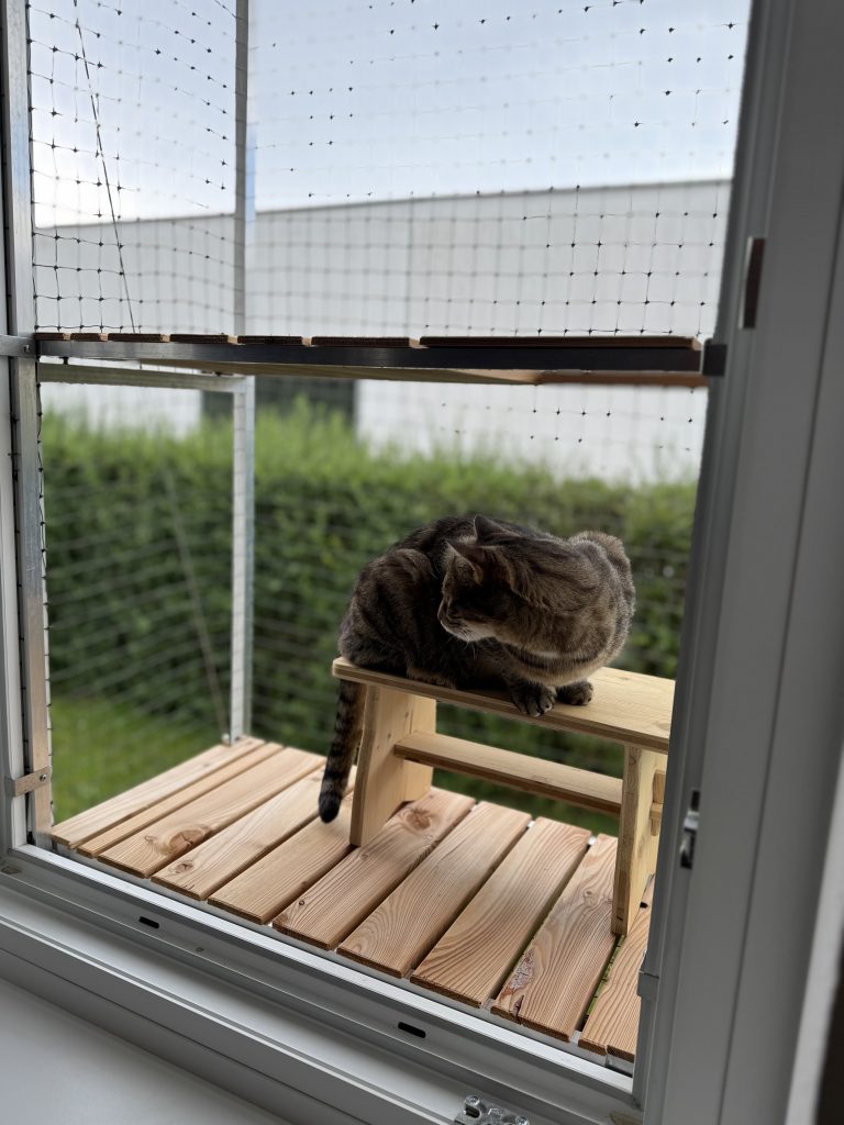 Ich kann Euch die Katzenbalkone von ganzem Herzen empfehlen, meine Katzen nutzen sie täglich und sind für sie eine riesengroße Bereicherung in ihrem Alltag. Sie lieben es in der Sonne zu liegen, den Wind im Fell zu spüren und das Draußen zu erschnuppern. Ein kleines Stück Freiheit mit großen Wohlfühleffekt.